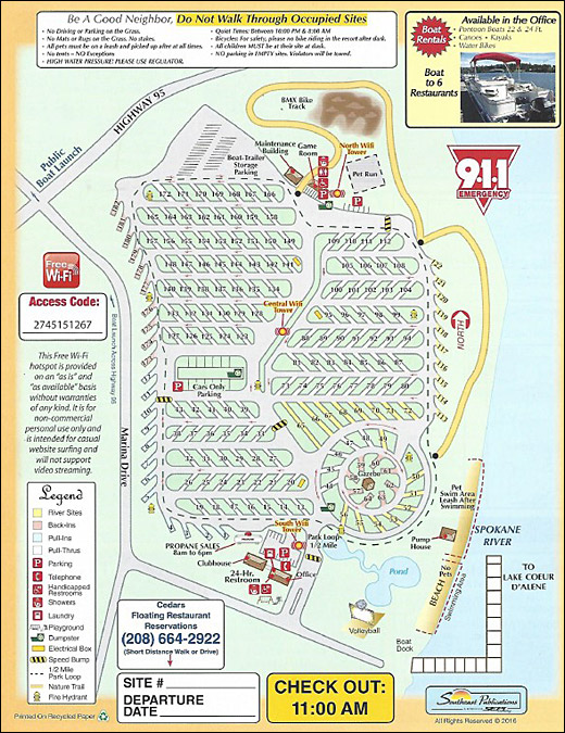 Click here for our current rates. Click here for an enlarged version of the map. MAP OF PARKING PADS North 47 degrees 40.844 minutes West 116 degrees 48.160 minutes